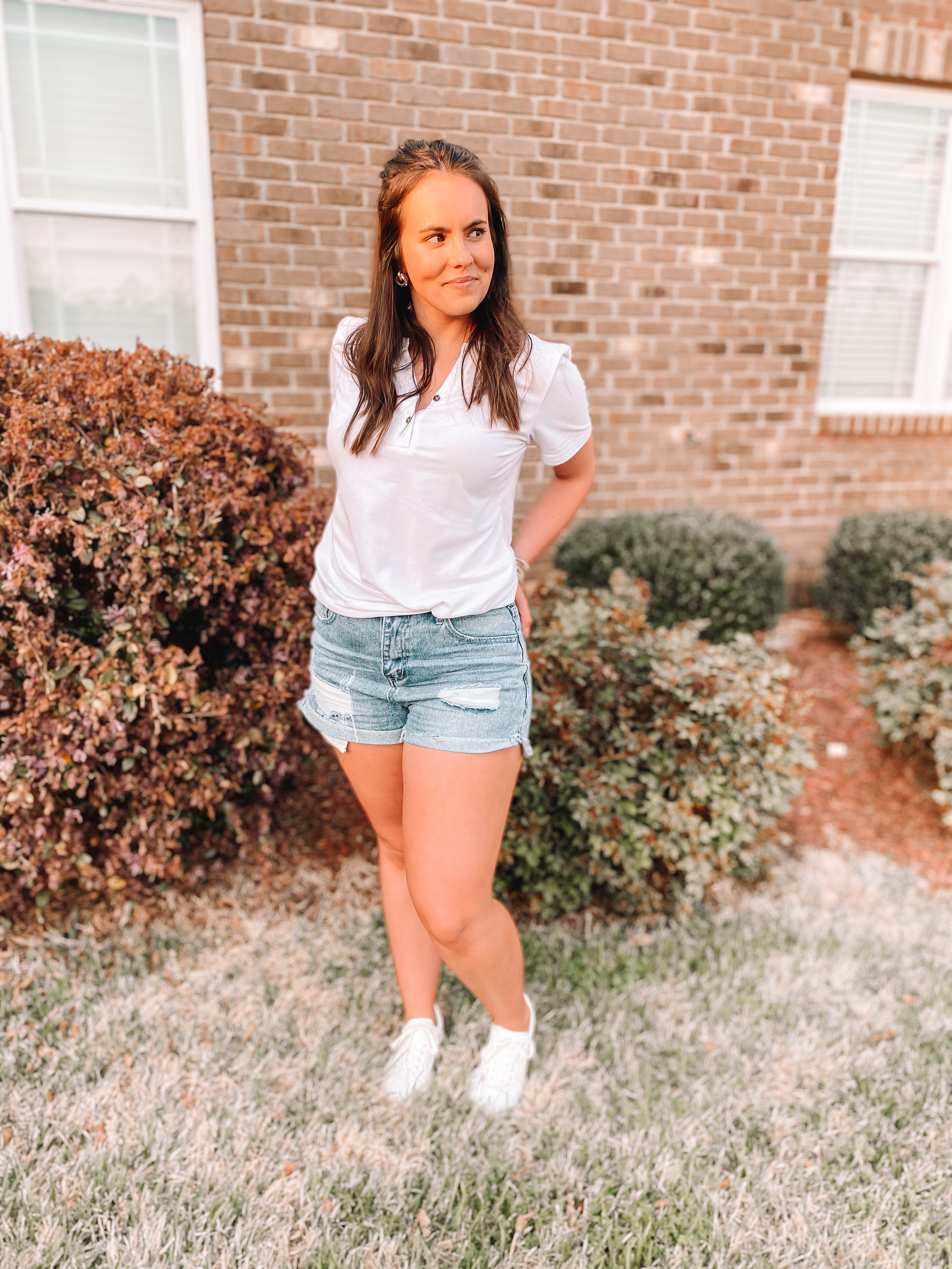 I love refreshing my wardrobe with some nice basics for spring and summer! This is the perfect white t-shirt to have on hand in your closet. It also comes in several other colors. It’s a bit longer than pictured, as I tucked it into the front of my shorts in this picture. But I’ve also worn it with leggings and it looked great as well! These shorts are another Amazon find. For only $20, I’m happy with the purchase and will be wearing them again! I am wearing a size small in the shirt and medium in the shorts.