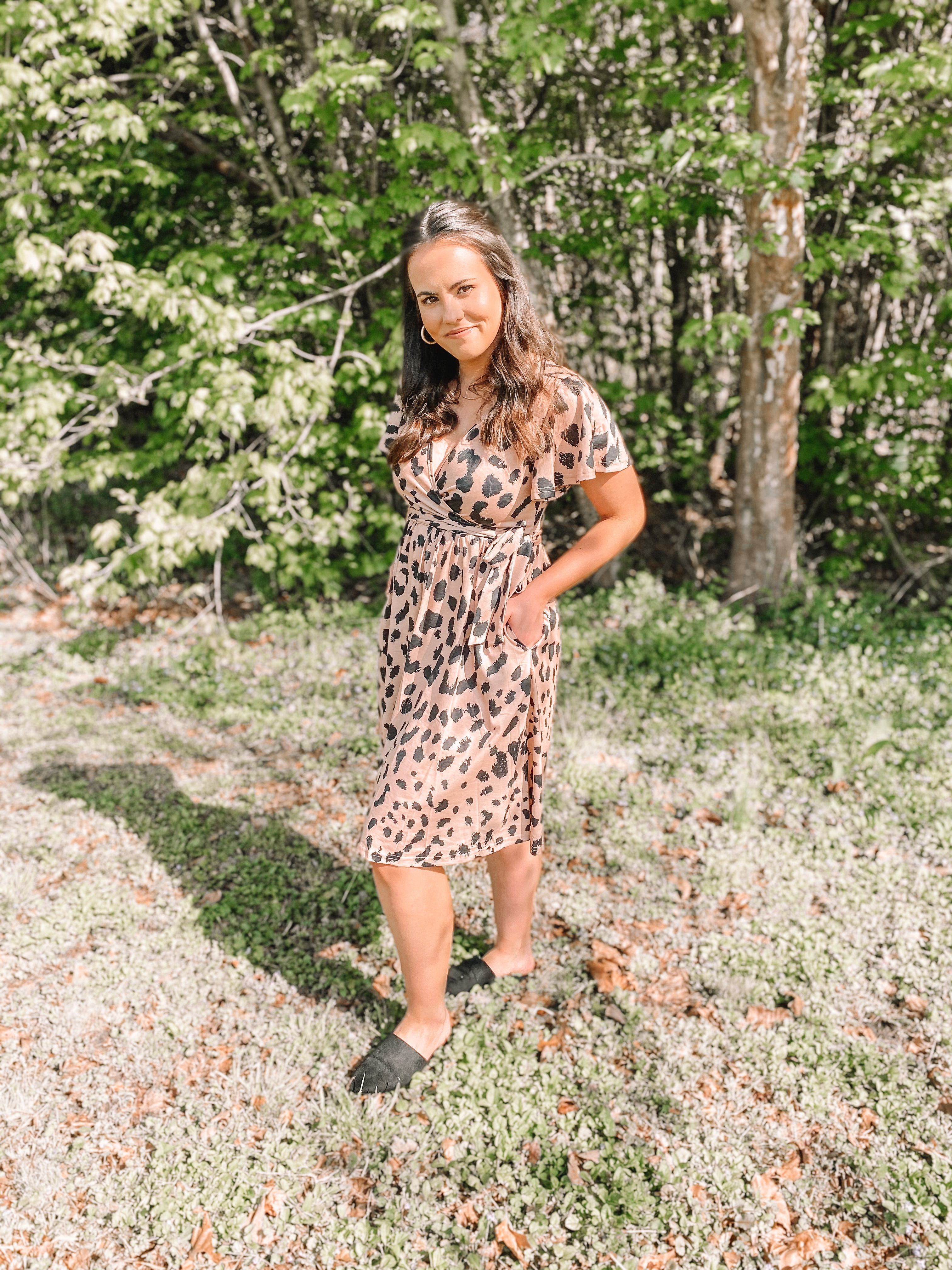 How cute is the pattern of this dress?! It’s also super soft, great quality, and the perfect length for wearing to work. It does have a v-neck that’s adjustable, which I may put a safety pin in just to be on the safe side. In the above photo, I styled this dress with a pair of black mules, which is likely how I would wear it to work. When I had a wardrobe malfunction on a different dress that I was planning on wearing to a wedding last weekend, I threw on a pair of black heels with this dress and it looked great. I am wearing a size small in the dress.