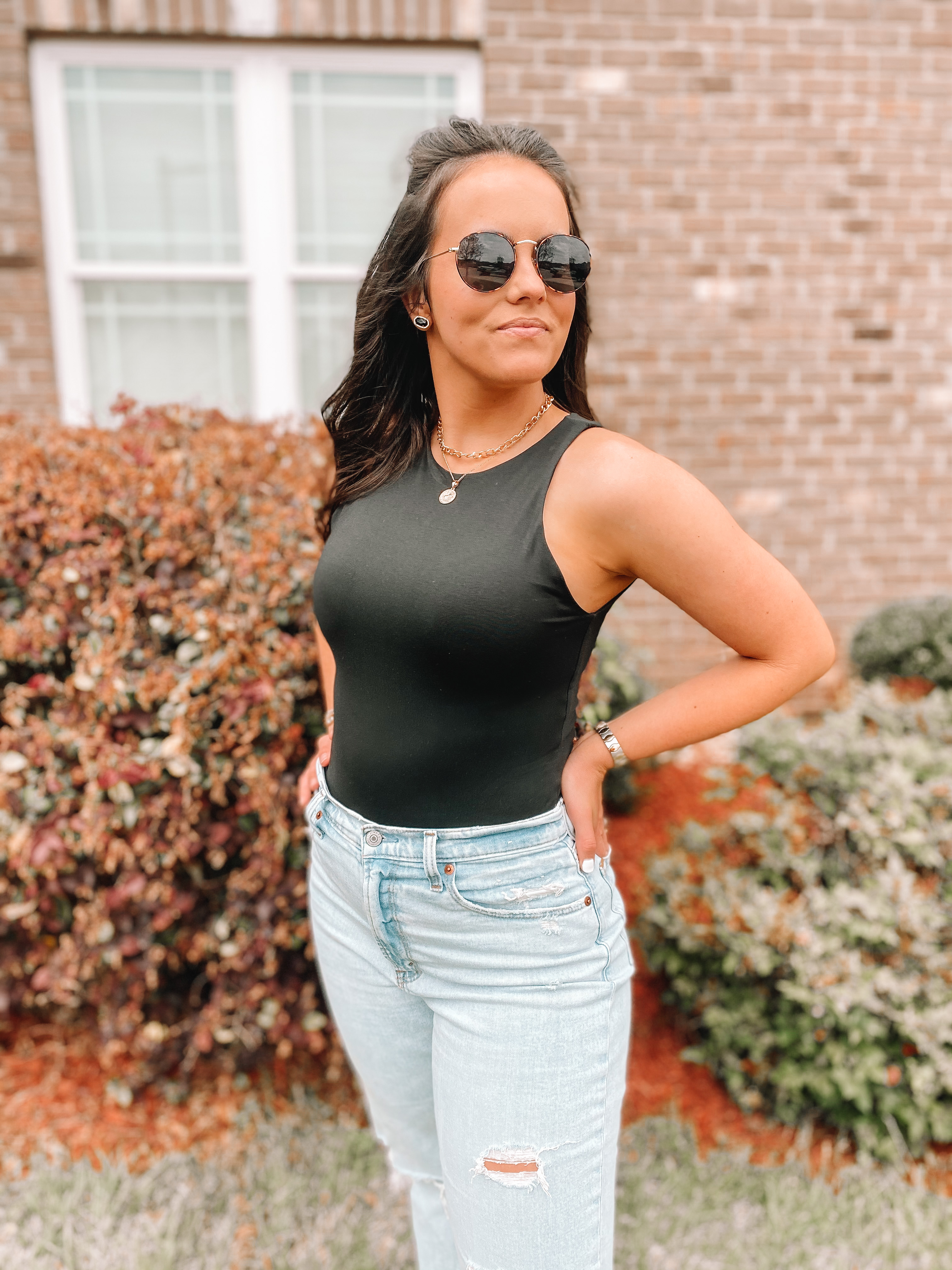 Anyone else notorious for losing or breaking sunglasses? I’m typically a pretty careful person, but for some reason I always have bad luck keeping sunglasses around. Although I’ve had my eyes on a few pricier pairs, I don’t fully trust myself to get them haha. I started browsing Amazon a few weeks ago and noticed that they have tons of trendy sunglasses for a much more affordable price point! I ordered a few pairs to test out and I love all of them! I’ve actually got more in my cart that I saved for later because it was so hard to choose! I’m sharing each of the styles I ordered below. My bodysuit in these pictures is also an Amazon find – I’ll link it below!