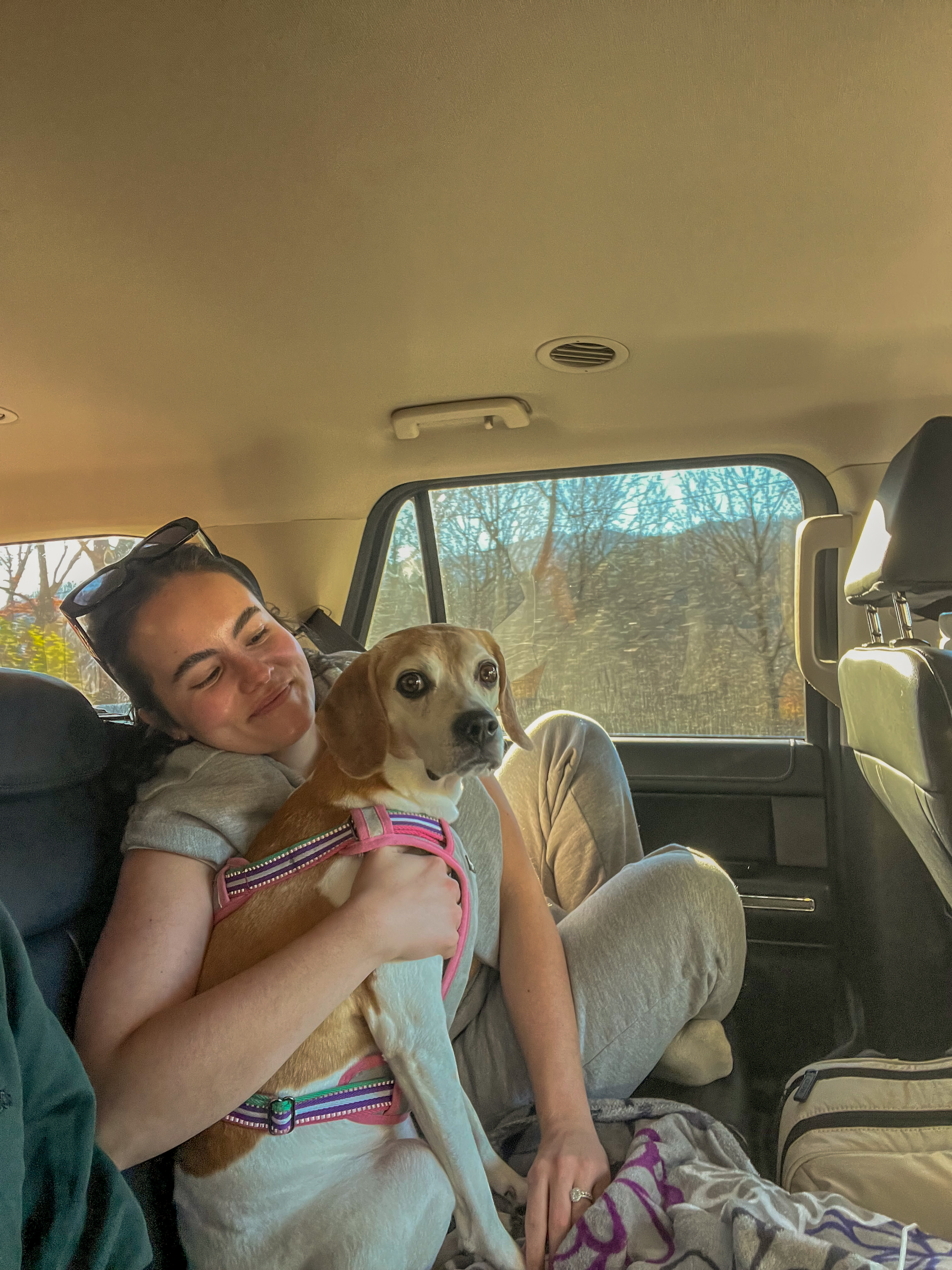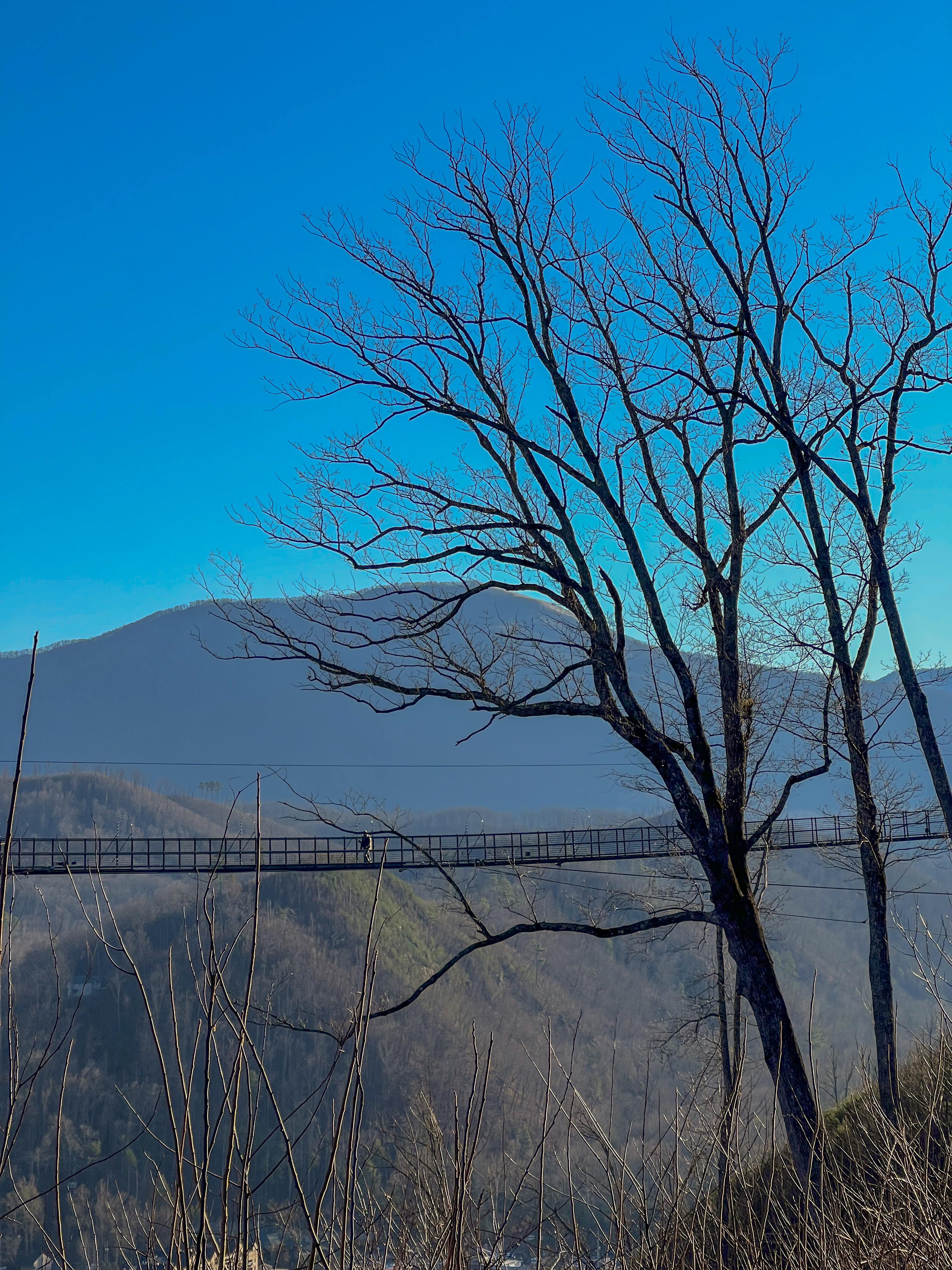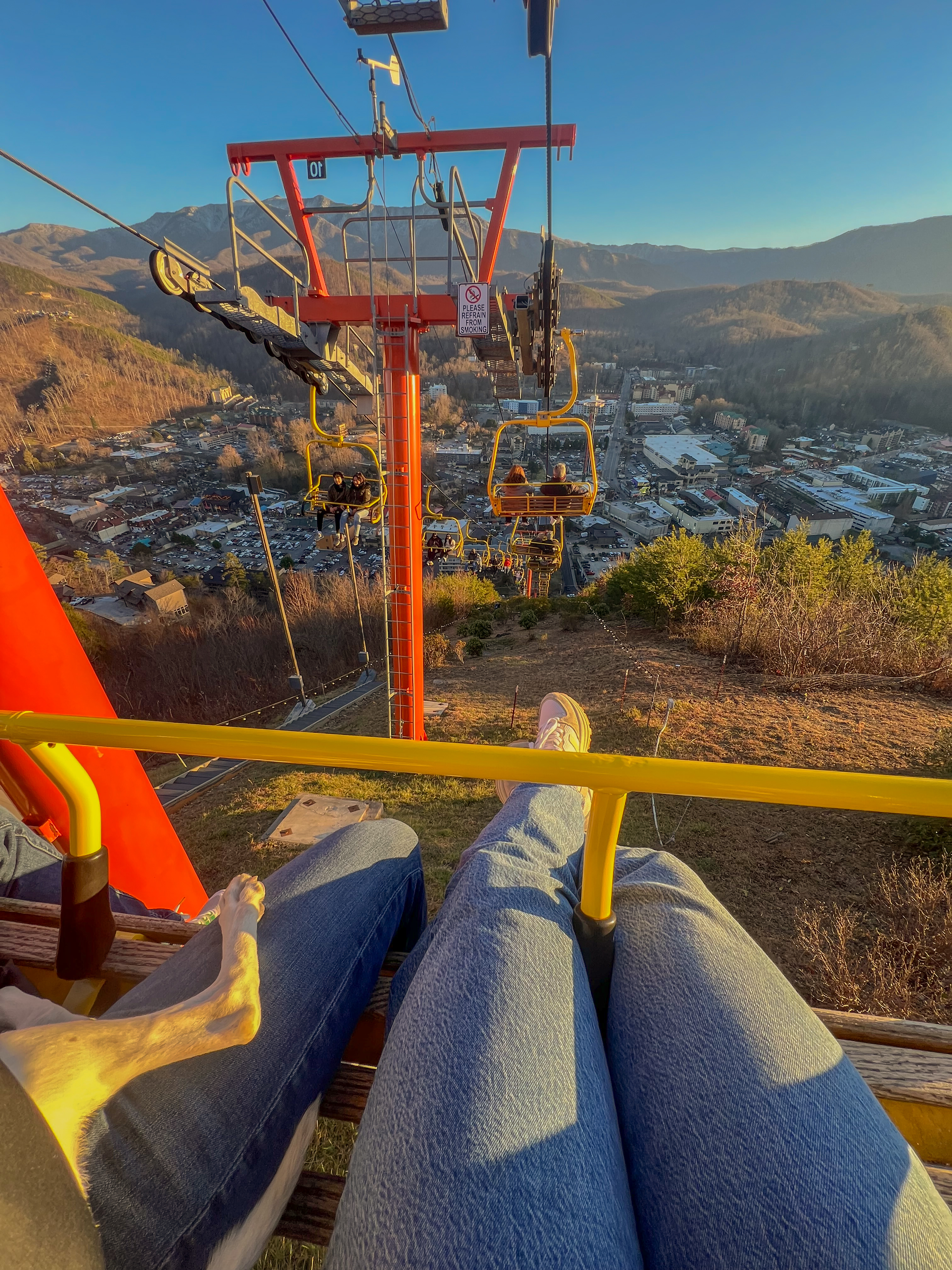 After the National Park visit, we headed back to downtown Gatlinburg as we had made reservations for Gatlinburg SkyPark. I was so impressed that this location was dog friendly! I will admit it was a bit scary brining Sunny on the SkyLift, but we held onto her tight and she did great! Once at the top we were also able to walk over the SkyBridge and see so many panoramic views. We enjoyed walking through some trails as well as having a drink while watching the sun go down. The location was truly stunning and I’m so glad Sunny got to be with us!