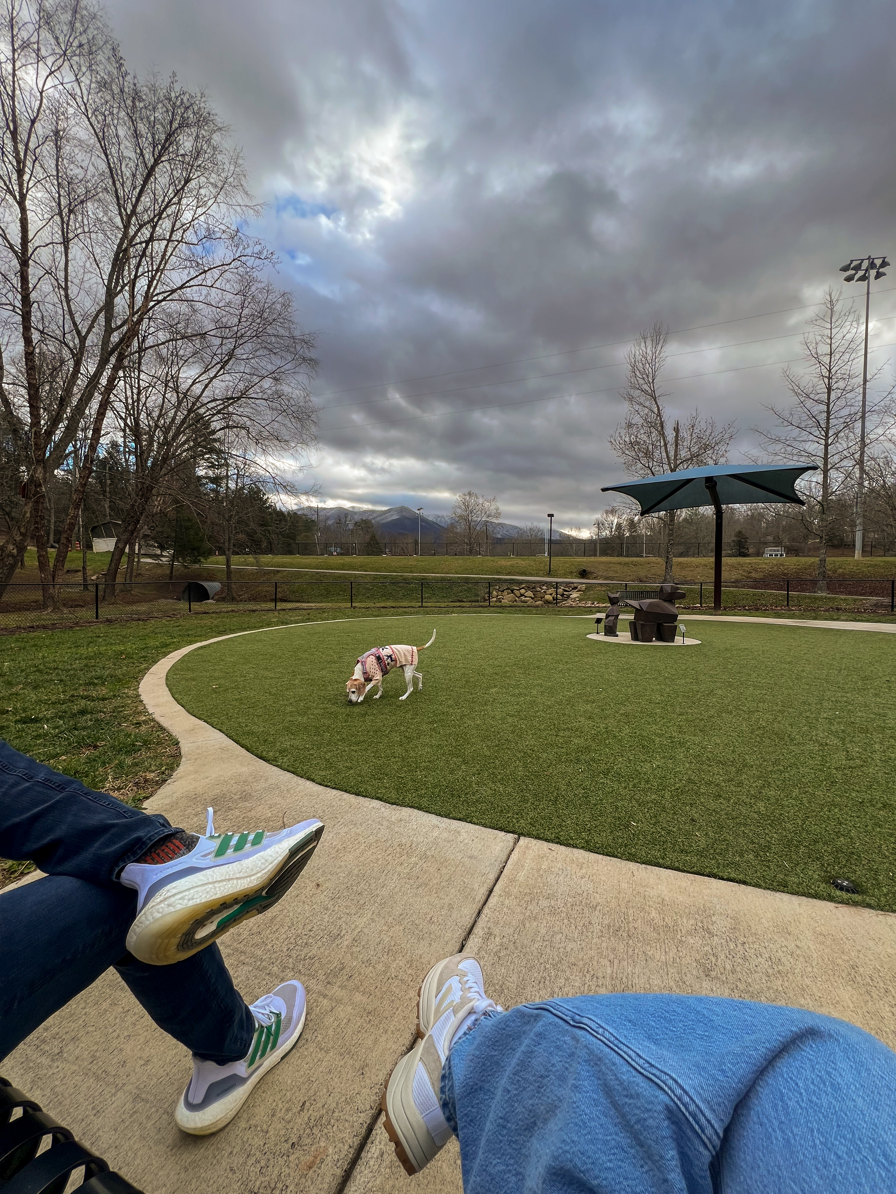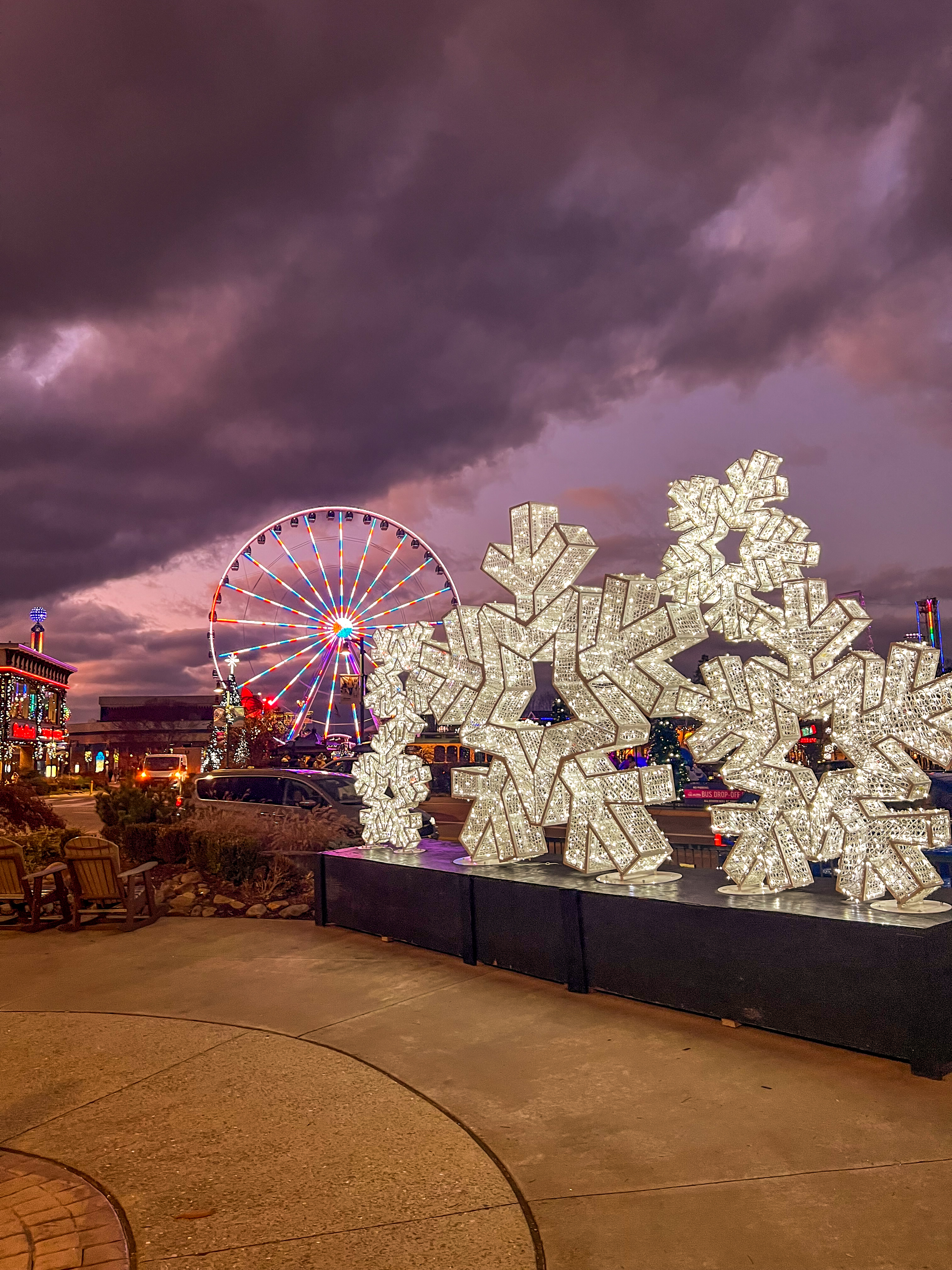 Our 3rd day in Gatlinburg was definitely the most relaxing day. It was New Year’s Day so we mainly just took it easy at the rental for most of the morning. I enjoyed some coffee while using my new favorite eye patches from True Botanicals. We took Sunny for a walk and stumbled upon the cutest dog park– Mills Dog Park. There were separate areas for big and small dogs to play off leash, although Sunny didn’t meet any new friends because it was so cold! That evening we bundled up and drove a short distance to Pigeon Forge’s Winterfest. It was so beautiful to walk around here, and there were tons of shops, restaurants, and entertainment options to explore.
