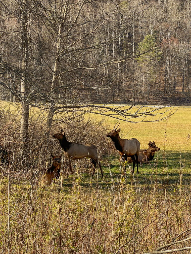 Our last full day in Gatlinburg was definitely my favorite! We started the day by going to the Great Smoky Mountains National Park. We went to the Sugarlands Visitor Center where we learned that we can drive up to the top of the mountain for scenic views. As we were driving further up, we began to see icicles and snow. There were several places to stop and take pictures– it was so beautiful! We continued driving a bit further to the Cataloochee area where we were able to observe elk. This was so neat and was not something I was expecting to see on this trip!