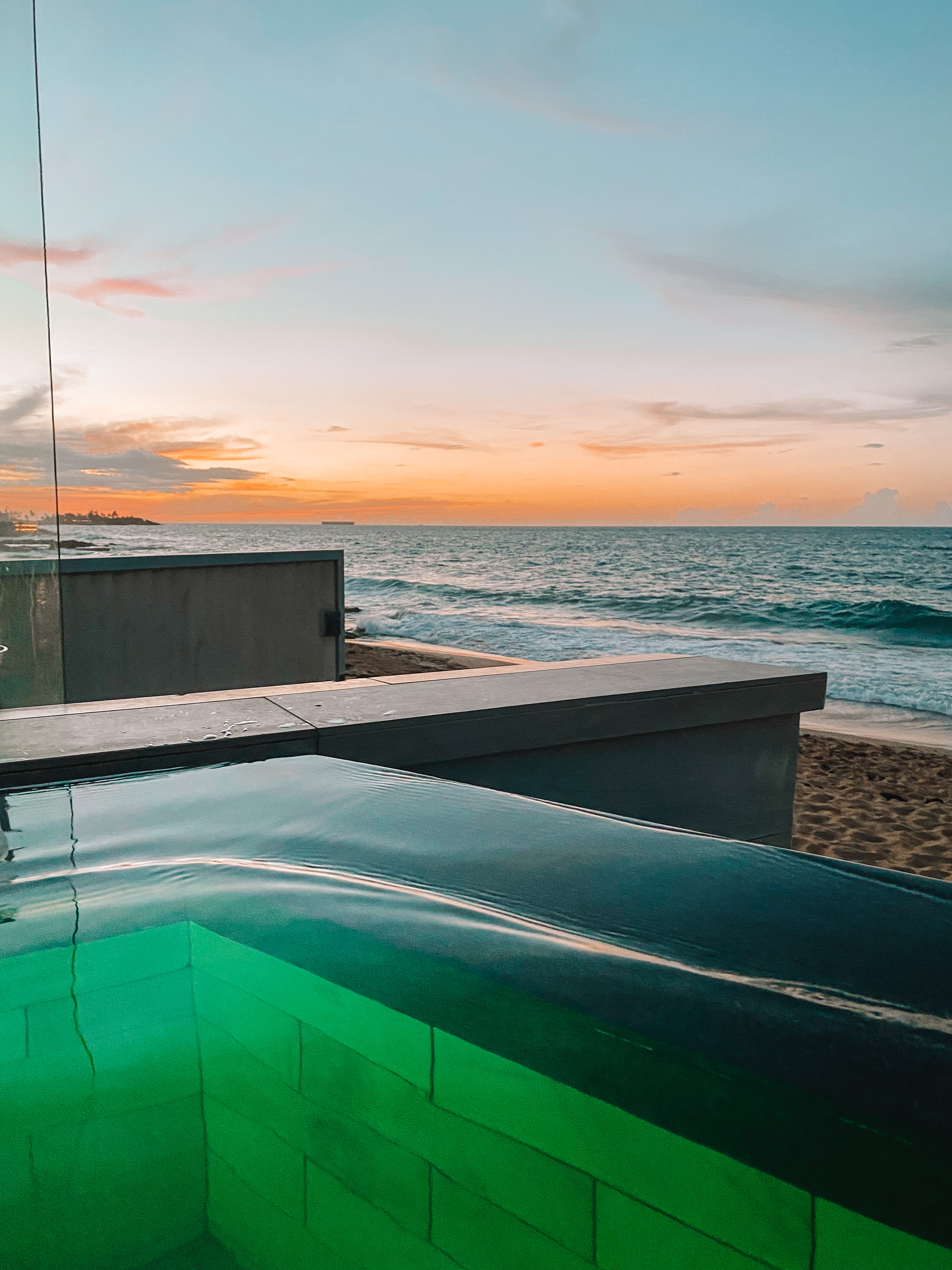 We landed early in Puerto Rico on our first day and headed straight to our hotel, Condado Ocean Club. This is an adults only hotel in the Condado area of San Juan. The hotel staff was extremely accommodating and even allowed us to check into our room early. We booked this trip last minute and the oceanfront rooms were sold out. But I was pleasantly surprised with how beautiful the laguna view was! The hotel was modern and clean all around, but the most exciting amenity was the oceanfront infinity pool. With music and a bar by the pool, the atmosphere was extremely fun. We also loved the hotel’s restaurant, which serves breakfast, lunch, and dinner with gorgeous ocean views. The beach area directly in front of the hotel is not ideal for swimming due to the rocky landscape, but there are tons of the other beaches nearby. We thoroughly enjoyed Condado Ocean Club and highly recommend it for anyone looking for beautiful views, great food, and a fun stay.