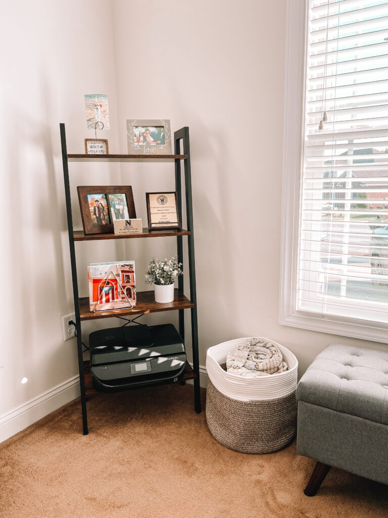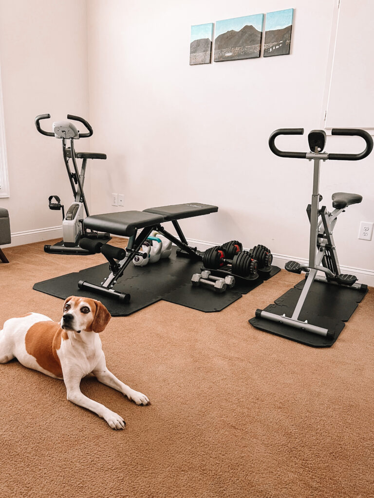 With a little rearranging, our home office now doubles as our home gym and I love it! My husband still has his work from home desk set up on one side, and now we have all of our gym equipment on the other side. Working out has been much easier and more enjoyable now that we have an organized space to do it in. Our squat machine, workout bench, and weights are all from Amazon. I think we got the bike from Walmart but it’s also available on Amazon too! Prime shipping is always so easy with Amazon, and we have never had any issues with large items getting delivered in good condition. Although we have had this a little while, I thought I would include the shelf organizer we also have in the office from Amazon. I love how pretty it looks styled and the wood is the perfect shade. This basket with blankets is from Amazon and the bench below the window is from Target.